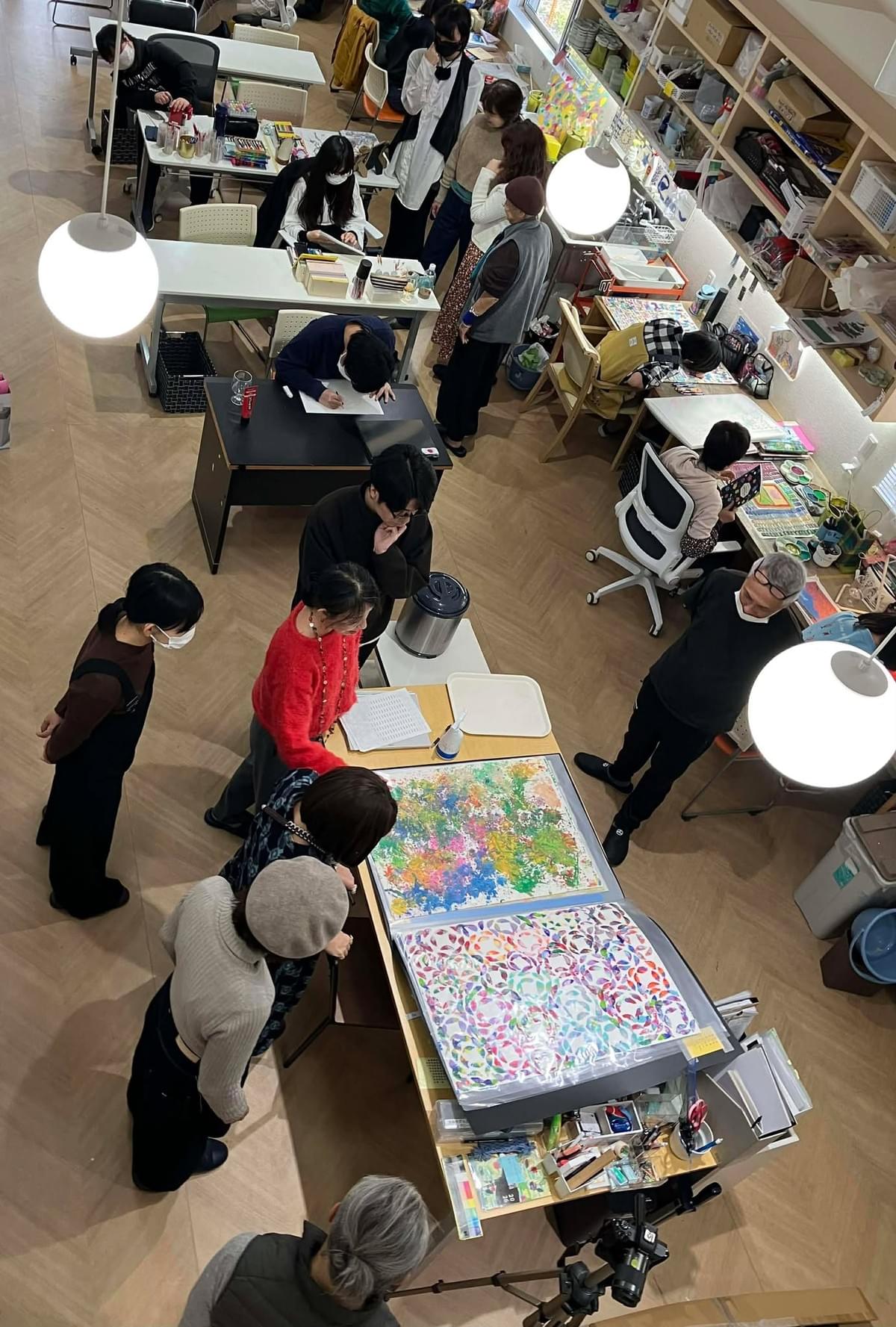 講師の中津川さんがアートディレクターを務める、アートを仕事にする福祉事業所を訪ねます。何故魅力的なアート作品が障害特性がある人たちから生み出されるのでしょう? アトリエを見学し、理事長の萩原美由紀さんのお話を聞き、考えます。